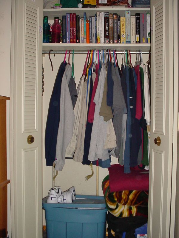 lmao, yeah, why is there that ominous looking hook hanged up there near your silly t-shirtsthat one blanket is silly colored. spray everything in the closet with some gasoline and LIGHT IT UP